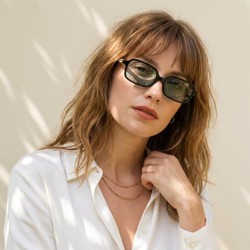 Emily Rechteckige Grüne Sonnenbrille