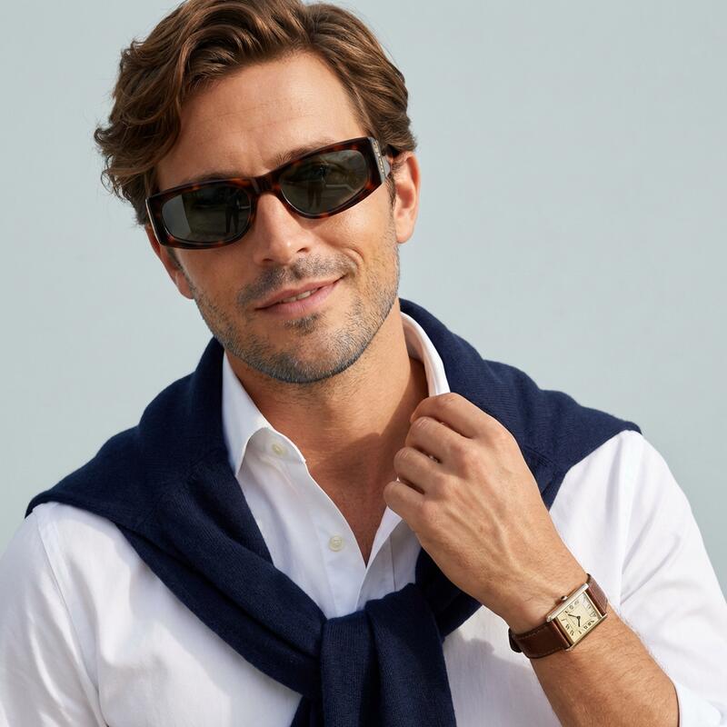 Layla Rechteckige Grüne Sonnenbrille